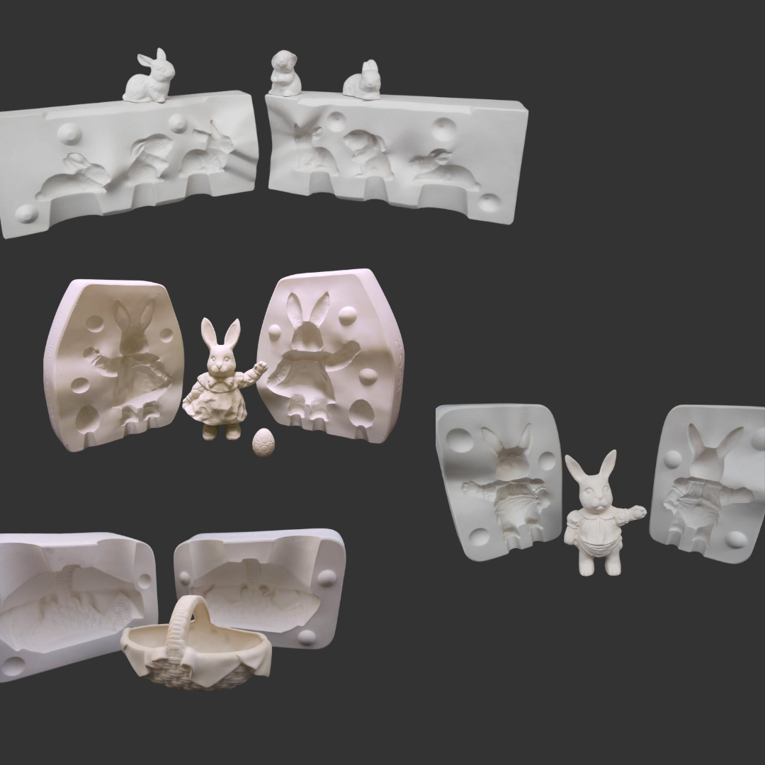 Neue und bestehende Gipsformen für Osterfiguren – ideal für dekorative Figuren und saisonale Projekte.